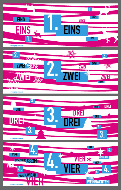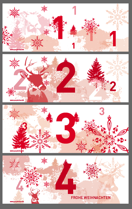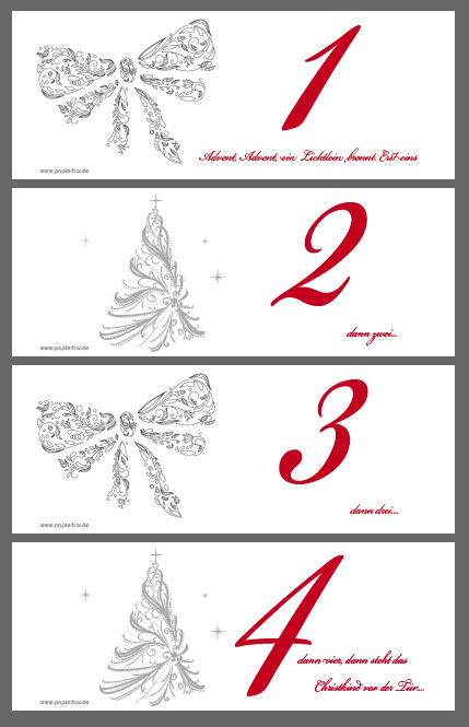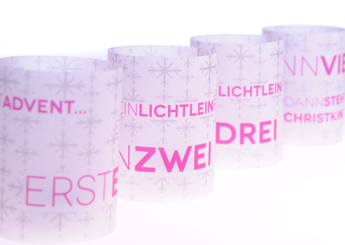 scheinbar macht Ihren Adventskranz zu etwas ganz Besonderem: Erst eins, dann zwei, dann drei, dann vier schimmern die Papierlichter stimmungsvoll. Unkompliziert als DIN-lang Karten verschickt und mittels Steckmechanismus verbundenen erfreuet dieser ungewöhnliche Adventskranz Freunde und Kunden in der Vorweihnachtszeit.